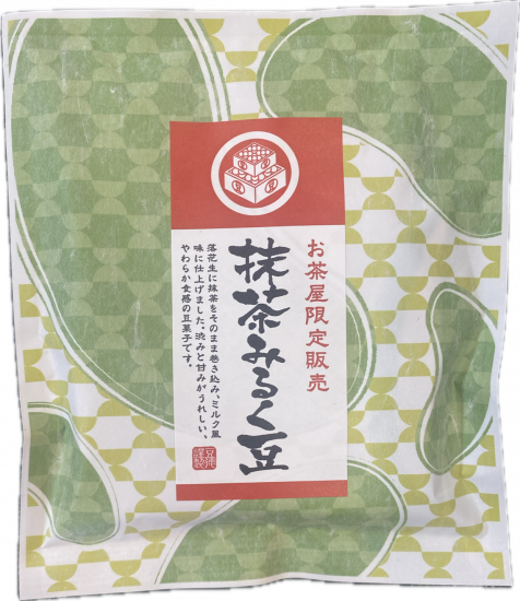 落花生に抹茶をそのまま巻き込み、ミルク風味にしあげました。
